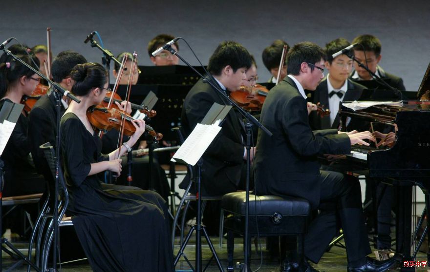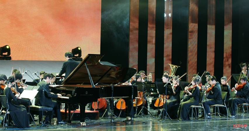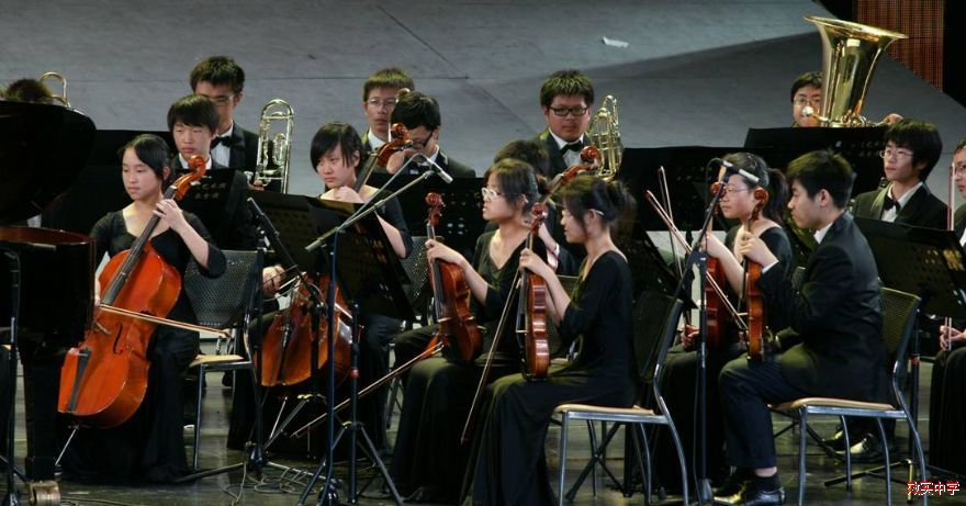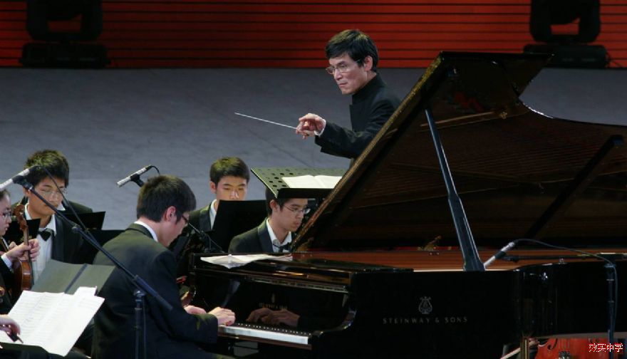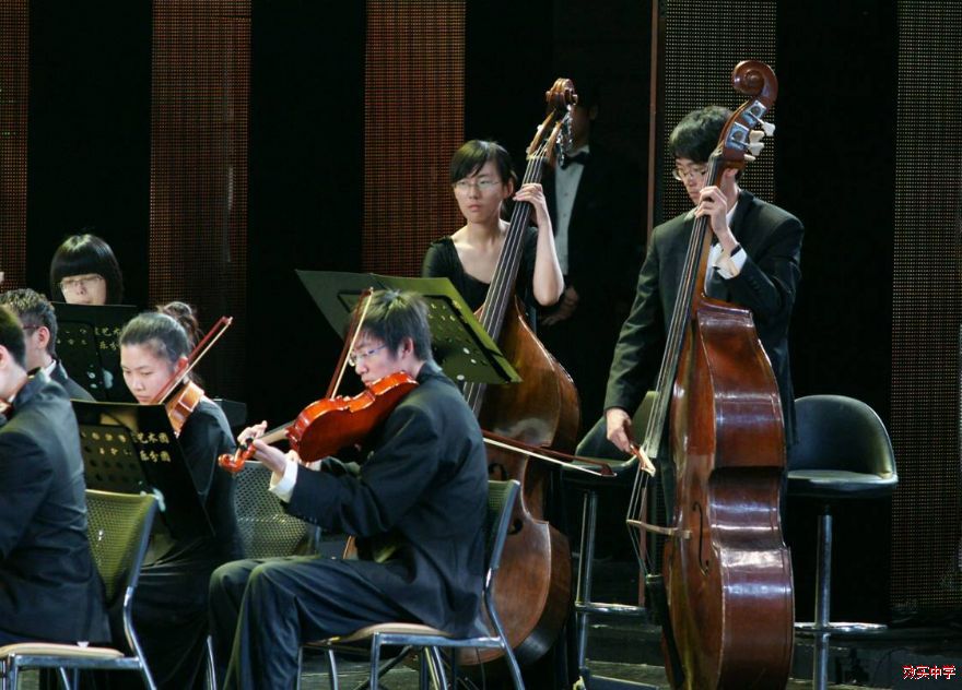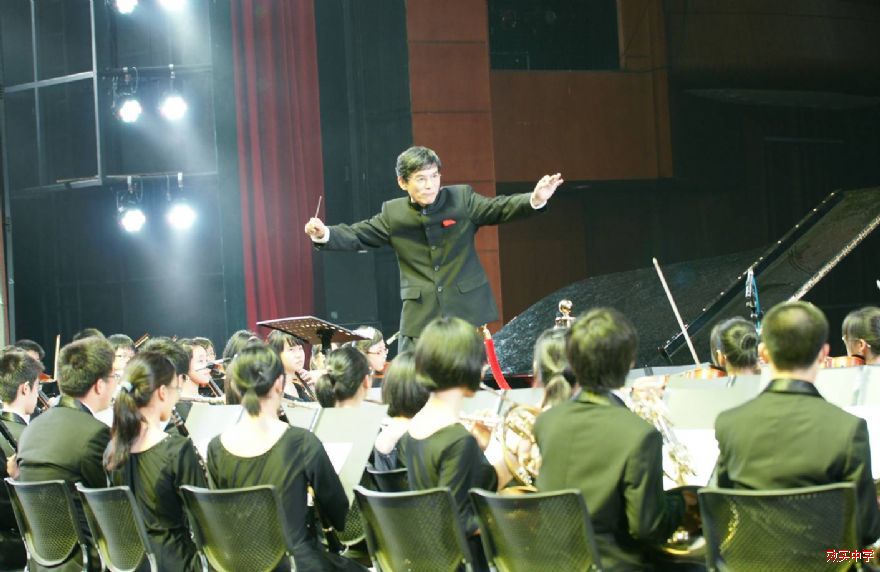 永远跟党走——宁波市教育系统庆祝建党90周年文艺晚会于7月4日、5日在宁波大剧院隆重举行。我校管弦乐团应邀演奏了经典的红色器乐作品:钢琴协奏曲《黄河》第四乐章《保卫黄河》,担任钢琴演奏的是高一(4)班的张育茗同学。本次演出特别邀请了浙江交响乐团的陈国华先生作为艺术指导和现场指挥,这给效实乐团注入了新的生命力,音乐经过跌宕起伏的发展后,当《东方红》的旋律在剧院回响时,人们被这首民族音乐交响化的作品所震撼,心潮澎湃!