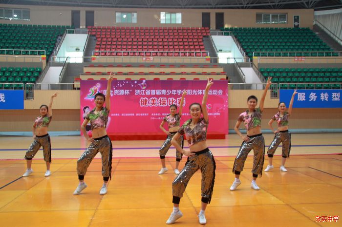 2011年8月14日—16日浙江省首届青少年学生阳光体育运动会健美操比赛在美丽的千岛湖淳安县体育馆举行,本次比赛共有温州中学、绍兴一中、衢州二中等全省二十多所学校参赛,我校代表队经过努力拼搏并脱颖而出获得普及组风采赛和普及组规定组集体徒手操两项比赛冠军。
