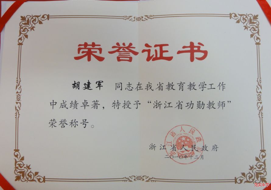 我校胡建军副校长被浙江省人民政府授予第五批“浙江省功勋教师”荣誉称号,并已于9月8日赴杭州出席了颁奖典礼。