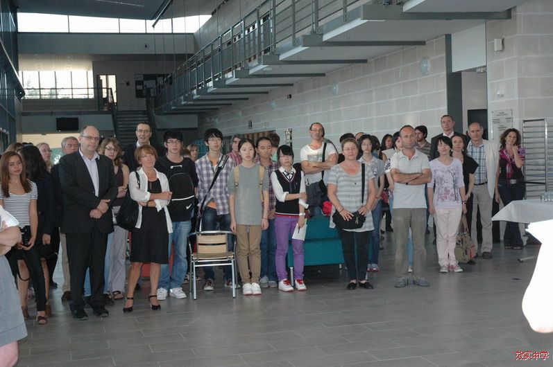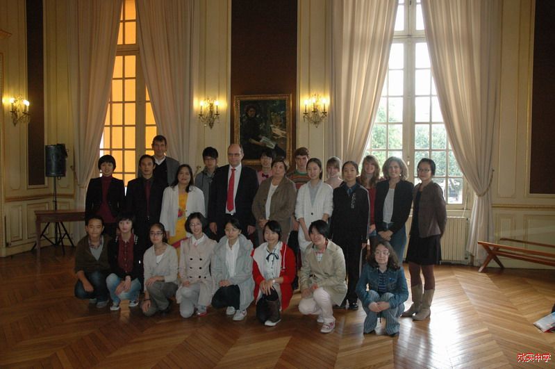 我们这次到访,姐妹学校和鲁昂市政府都高度重视,校方邀请了接待家庭、鲁昂市政府官员和上诺曼底大区教育局的官员在学校大厅为我们的到访召开招待会,新任的波蒂校长发表了热情洋溢的讲话,热烈欢迎我们的到来,由于我们两校的交流活动深入,选读中文作为外语的学生每年在增加,这是一个好的趋势,到访过中国的学生不仅他们自己也带动周围的同学改变了对中国的看法。她说,为我们的访问精心作了准备,让到访的我们深入了解法国文化。星期五,今年五月来我校访问过的鲁昂市副市长布鲁诺先生在鲁昂市市政厅为我们结对师生召开了欢迎会。他说,我们两校的互访是宁波和鲁昂友好城市交流的重要内容之一,随着交流的深入,鲁昂和宁波两座城市在经济、文化、医疗、科技等方面都有很好的合作。他非常欢迎我们的学生有机会到法国、到鲁昂学习深造,也希望结对的学生将来能成为宁波鲁昂两个城市和中法合作交流友好“使者”,法国鲁昂宁波友好委员会主席樊尚主席和政府其他官员参加了欢迎会,当地的媒体也当场采访我们这次访问活动,布鲁诺先生还为我们每一位师生赠送了纪念品。