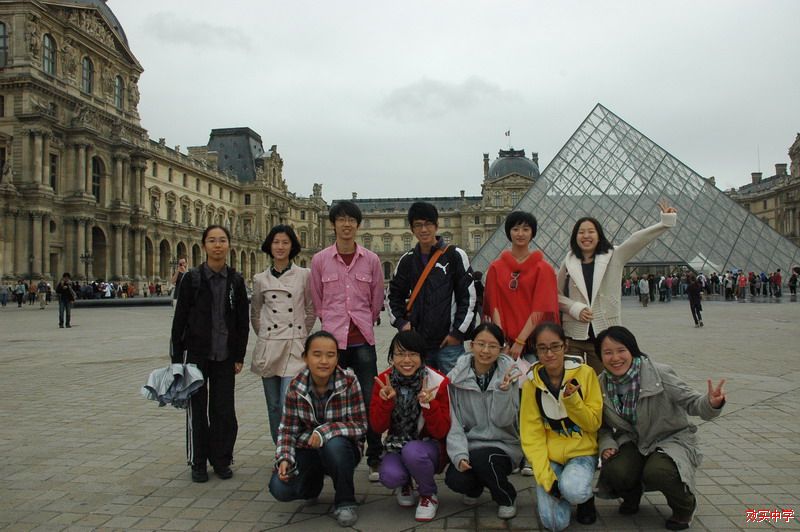 在世界艺术宝库的卢浮宫合影