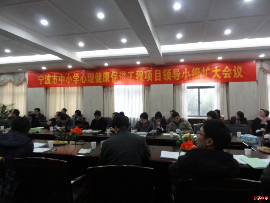 2月28日,宁波市中小学心理健康促进工程项目领导小组扩大会议在我校举行。市教育局宣传德育处何倩处长、市教科所沈海驯所长和有关专家及各县(市)区教育局分管局长、各县(市)区教所所(室)心理健康教育负责人,各项目实验学校领导等共五十余人参加了本次会议,市文明办未成年处戴建立处长应邀参加了会议。省教科院副院长、省中小学心理健康教育指导中心主任朱永祥研究员出席会议并讲话。