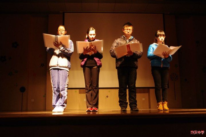 诗歌朗诵会是我校高一年级一项传统的文化活动。今年的诗歌朗诵会克服了场地、时间等不利因素,在语文组老师的通力合作下,在高一年级同学的热切期盼中顺利举行。本次诗歌朗诵会,从班内的小组展示到班际的汇报比赛,同学们都热情投入,积极参与。从诗歌的选择,到朗诵的编排甚至是最后的评委打分,同学们均自主完成,显示了对诗歌浓厚的兴趣和良好的组织能力。