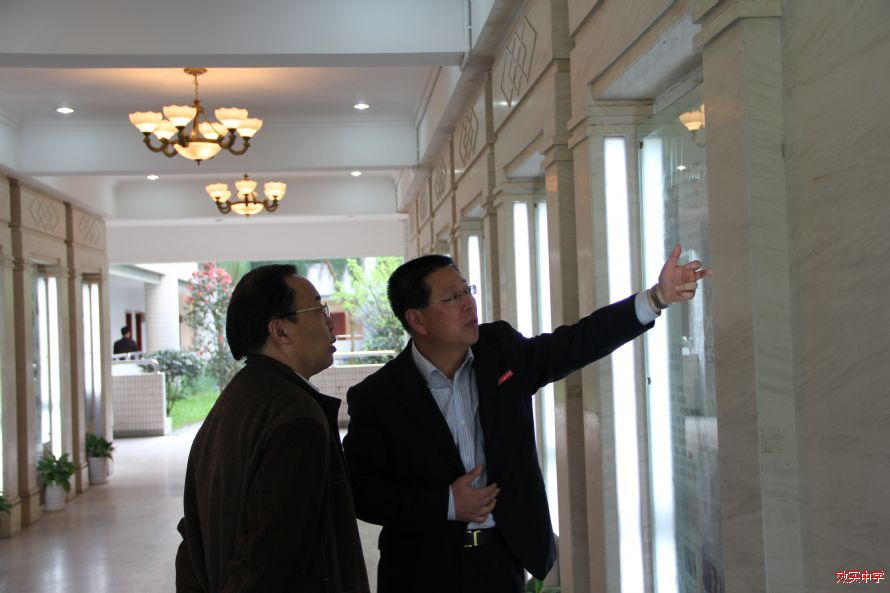 周校长向李镇西校长介绍了效实办学历史和学校办学情况,并陪同参观了效实校园。当李校长得知童第周院士是效实学生时,他向我们叙述了抗战时期童第周在四川李庄坚持科学研究的掌故,令人感佩不已。跟李校长一起来校的还有武侯实验中学两名青年优秀班主任。