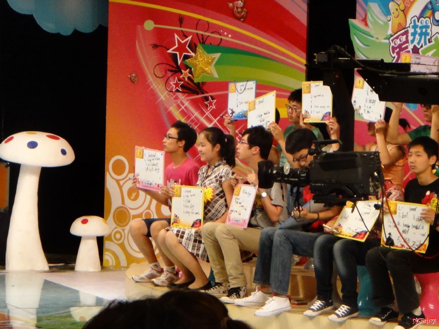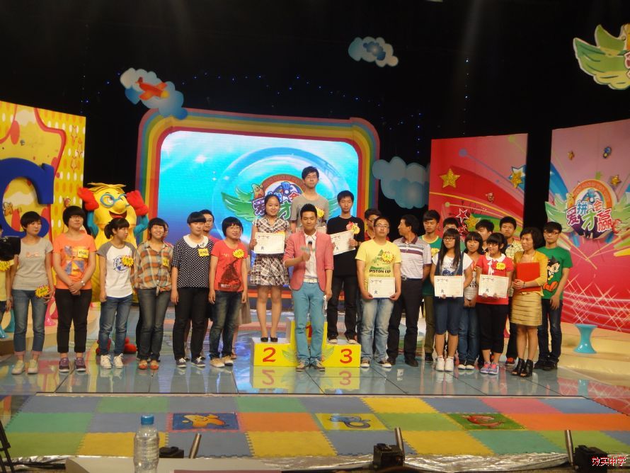 在北京石景山广电中心,陈双乐同学与蒋欣儿两位同学与来自全国多省市的同学们一较高下:听歌写单词,长篇听力,“心有灵犀”(一人笔画一人猜)……在多个项目后积分名列前茅双双晋级决赛,并在最后的看图演讲中出色发挥,征服了在场的评委老师,包揽了本期节目的冠亚军。