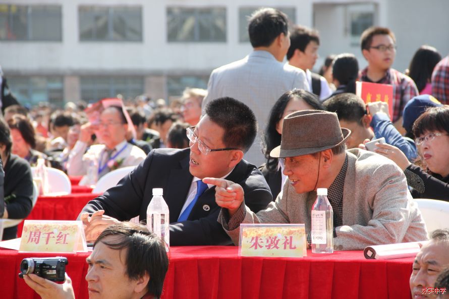 新老两任校长在庆典现场交谈