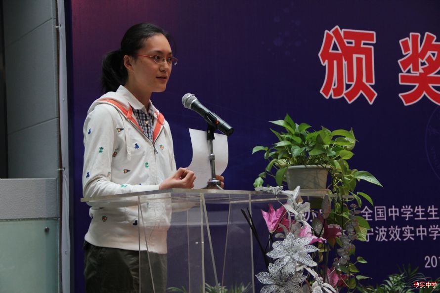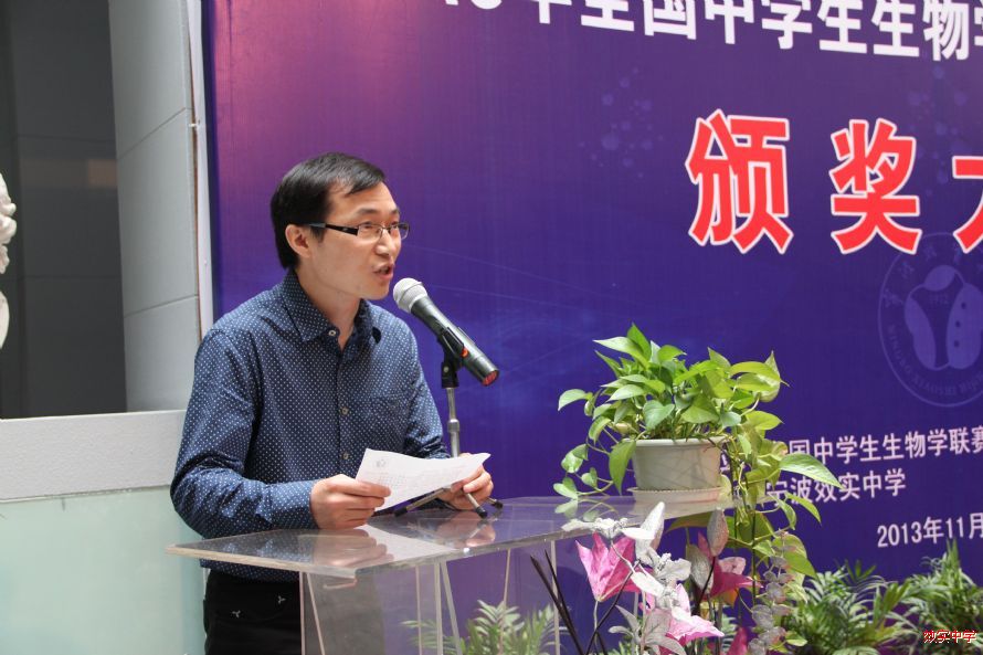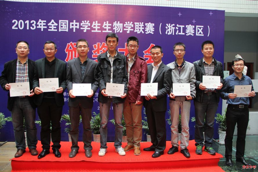 11月10日,2013年全国中学生生物学联赛(浙江赛区)颁奖大会正在学校天然舞台举行。来自全省各地市的团体优胜学校、获奖学生代表、指导教师代表受到嘉奖。省学科竞赛委员会主任杨英,省生物学竞赛委员会主任于明坚、副主任杨万喜出席大会。市教育局张力鸣副局长发表讲话,周千红校长致欢迎词,我校柯雨曦同学、范少迎老师代表获奖同学和指导教师讲话。