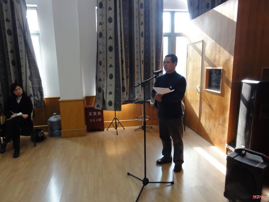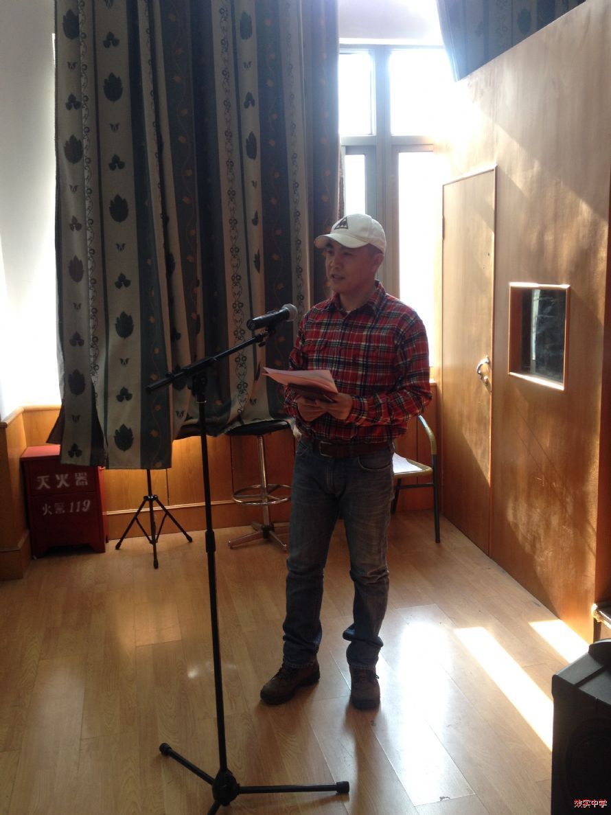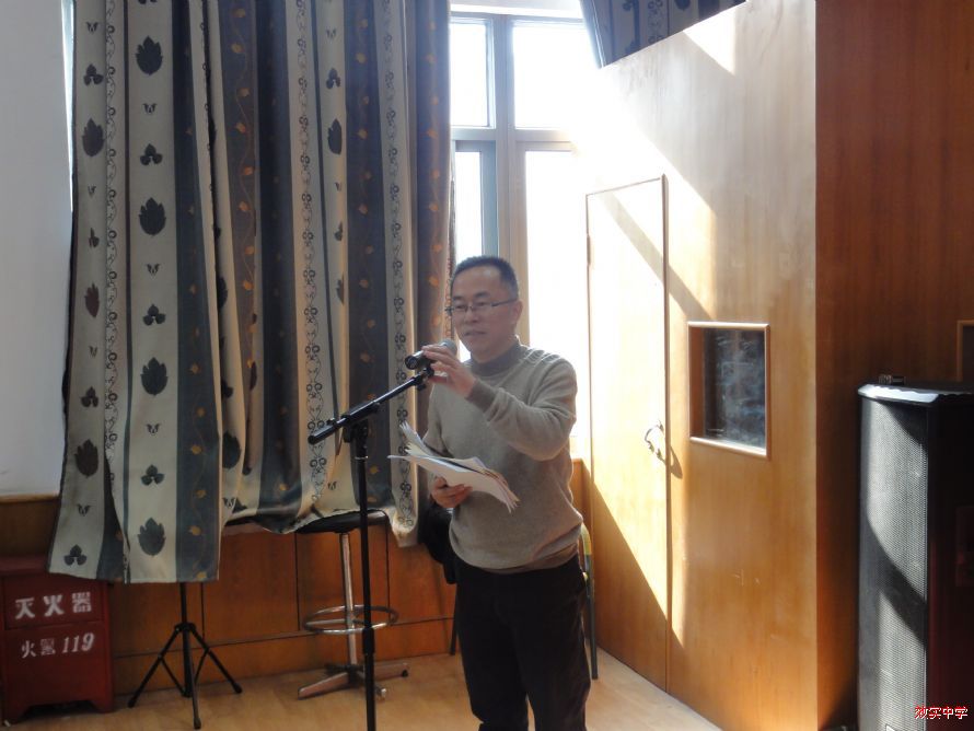政教处主任王甬龙老师受第九届校家委会主任陈黎峰女士委托发言