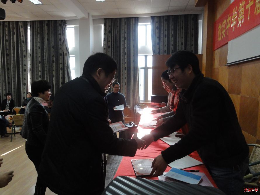 校党委书记胡建军老师、副校长夏宏祥老师、副校长张悦老师、副校长黄荣生老师为高二年级家委会委员发聘书