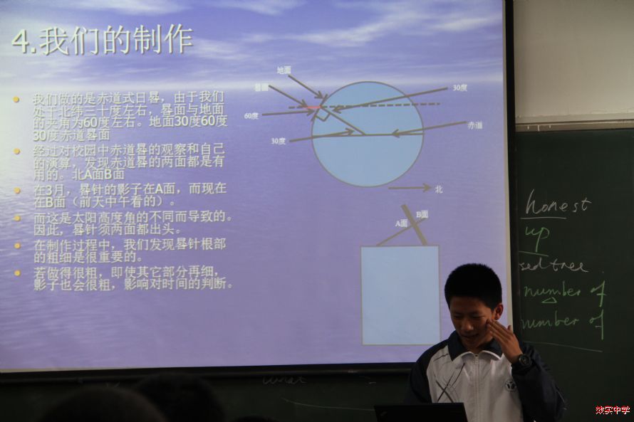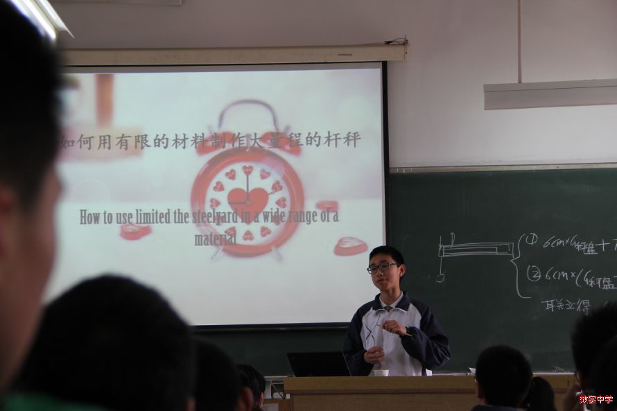 日前,2014级直升班、创新实验班的同学利用物理课与自修课进行了研究性学习成果展示会。展示的项目有:走马灯的制作、日晷的制作、杆秤的制作和各种材料保温性能的比较研究。同学们展示了自己的研究过程,分享了成果,并且将碰到的问题和进行的探索以及得到的收获与其他同学进行了讨论。在这个过程中,大家充分体现了自己的智慧,求知欲,分析解决问题的能力,团队精神,幽默感和不畏困难迎头而上的科学精神,整个教室充溢着会心的欢笑,让人不禁感慨,学习原本可以这般快乐,科学也确然有如此无穷的吸引力。最后,杨继林老师做了精彩总结,肯定了同学们的研究,提出了改进的意见,更鼓励同学们不仅要学习知识,更要发展能力,因为能力才是会让我们一生受益的东西。