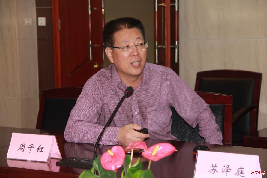 周千红校长向客人们着重介绍了我校智慧校园建设“适效实”的工作理念、“教-管-学”三个环节相配套的网络平台建设以及目前已经初步构建的“微课-DD90-云录播-试题库”系统。