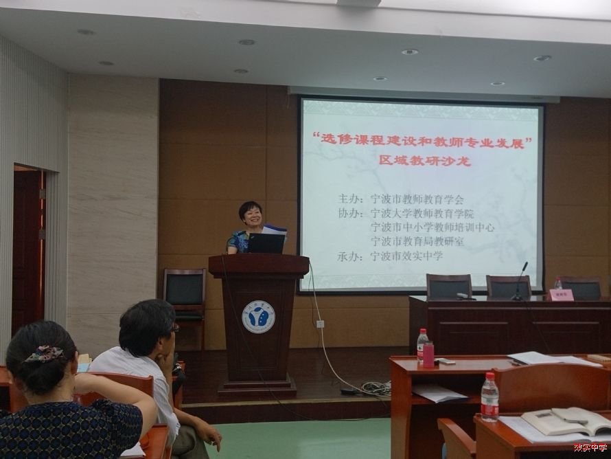 10月21日下午,“选修课程建设与教师专业发展”区域教研沙龙活动在宁波效实中学举行。本次活动由宁波市教师教育学会主办,宁波大学教师教育学院、宁波市中小学教师培训中心、宁波市教育局教研室协办,宁波效实中学承办。来自城区十余所直属中学的百余位语文教师齐聚一堂,围绕主题展开研讨。