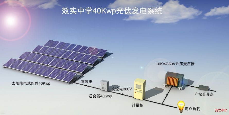 经过暑假太阳能光伏电池板和前期逆变器和计量电表安装,以及光伏发电并网测试,于124日下午正式将清洁的太阳能转变成电能输入到学校的电网系统中。