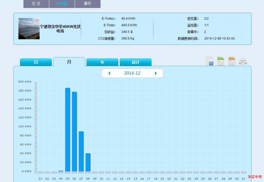 我校40KV光伏发电站月发电量(截止201412810:43分)