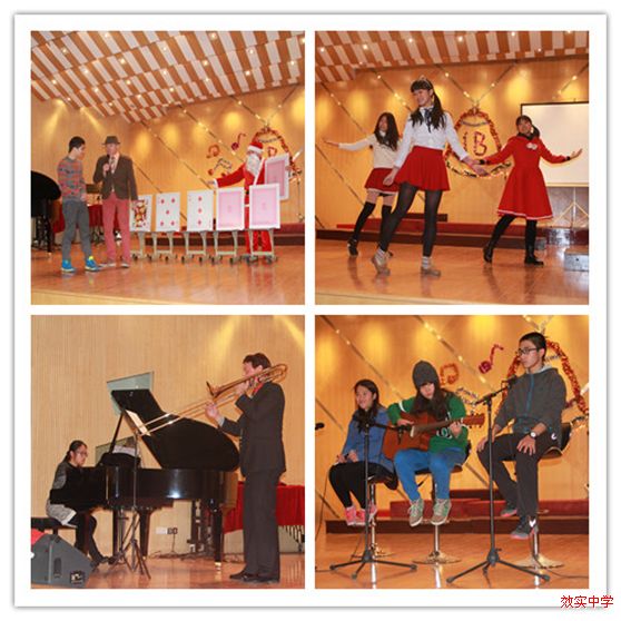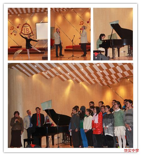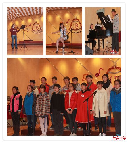 12月18日下午二时许,我校IB中心年度圣诞音乐会在体艺馆三楼的音乐厅举行。250座的大厅座无虚席,更有部分学生家长前来参加。经过为期一个多月的精心准备和排练,IB中心师生们给大家带来了一场精彩纷呈的演出。本次音乐会节目丰富多彩,主要展现IB中心的国际化特色,但又不乏中国传统文化融入其中:有英文圣诞歌的班级大合唱,有同学们自编自导的舞蹈表演,有民乐二胡独奏,有师生西洋乐合奏,还有长笛、吉他、小提琴演奏,更有外教Mr.Bentley与Mr.McKenzie的惊喜秀。表演者或专业或业余的表演赢得了台下观众的阵阵掌声。演出中间还穿插了一些与观众互动的西式小游戏Christmas Bingo和Card game,让没有参与表演的学生老师也有了上台亮相的机会。演出将近尾声的时候,学术校长Ms.Edwards上台作了简短讲话,表达了对演出的高度赞扬,并对辛勤参与排练演出的台前幕后的老师和同学一一作了感谢,也给大家送来了节日的祝福。圣诞音乐会给平时紧张学习的同学们带来娱乐放松的机会,也让他们对西方的节日文化有了更深入的体会。