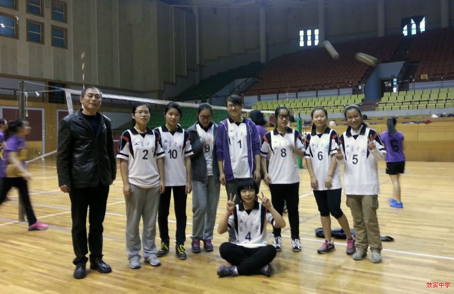 10月份,由宋少君、姚越、潘韵涵、屠滢、骆予、冯任倩、周晓薇、蒋楚沁、徐漠芸、李杰妮等同学组成的我校女子篮球队,在教练魏重斌老师的带领下,参加2014年宁波市直属中学篮球比赛,获得第五名。
