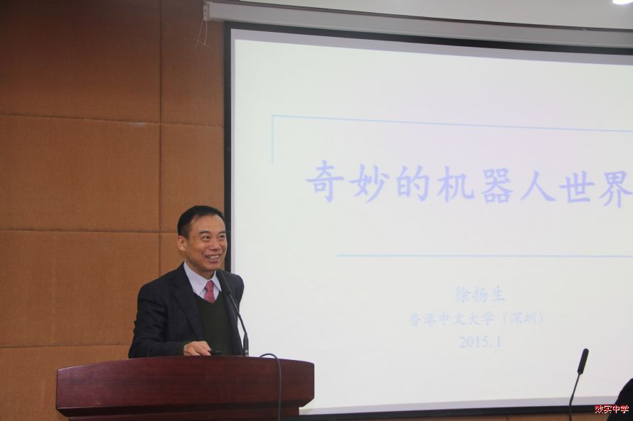 1月26日上午,香港中文大学(深圳)校长,中国工程院院士,机器人专家徐扬生院士为我校师生做了题为《奇妙的机器人世界》的科普讲座,徐院士用浅显生动的语言为我们讲述机器人的原理、现状与发展,以及未来人与机器人共存的世界。同时介绍了他所在实验室的研究工作及香港中文大学(深圳)的发展现状,并作了招生宣讲。