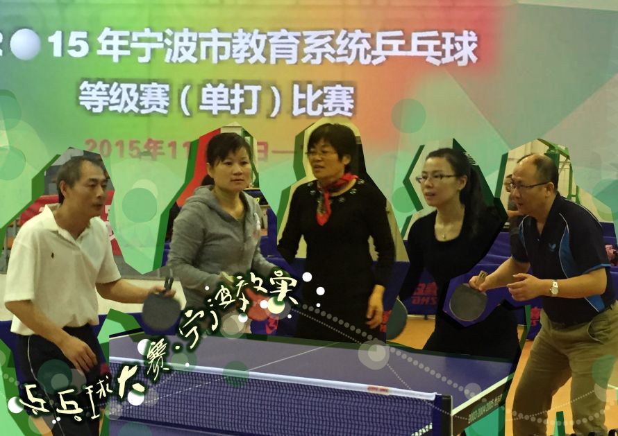 2015年宁波市教育系统乒乓球等级赛(单打)比赛于11月13-14日在宁波城市职业技术学院举行。在夏宏祥主席的带领下,我校六位教工参加了此次比赛,其中邬志林老师获男子甲级队第五名,习建平老师获男子乙级队第四名。向代表效实教工参赛的健儿们表示衷心的感谢和热烈的祝贺!