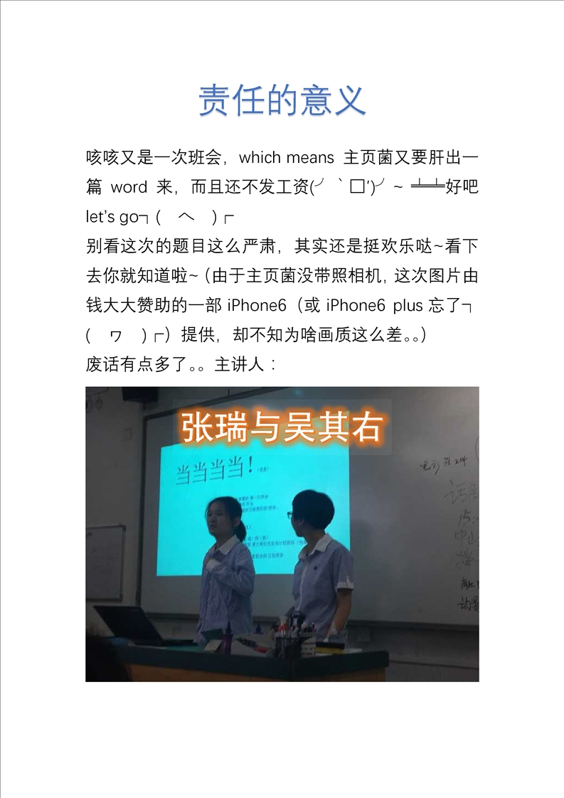 2017.9.16第二十四次班会——责任的意义