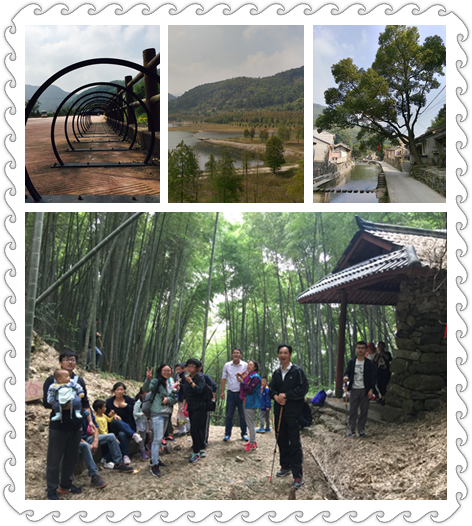 俱乐部人员和部分家属一行20人首先来到了上城村爬张家岭古道,张家岭古道古道全长约5公里,贯通上城村与童村,具有上百年的历史,是早期童村、上周村和童夏家村走向外界的交通要道。走在古道上,卵石铺成的路面保留得相当完好,在让我们感受先民们艰难生活的真实历史的同时,也领略了竹之浩瀚的壮景,满目漫山的绿竹,亭亭玉立,高耸如云,又簇拥连片,浩浩荡荡。浸润在这竹韵之中,人的心境也会变得轻快起来。大家上山的时候都卯足了劲,不到一小时,就都站上了最高峰。下山的路比较陡,每个人都小心翼翼,即使这样,依然无法阻止我们欣赏两边的竹林美景。
