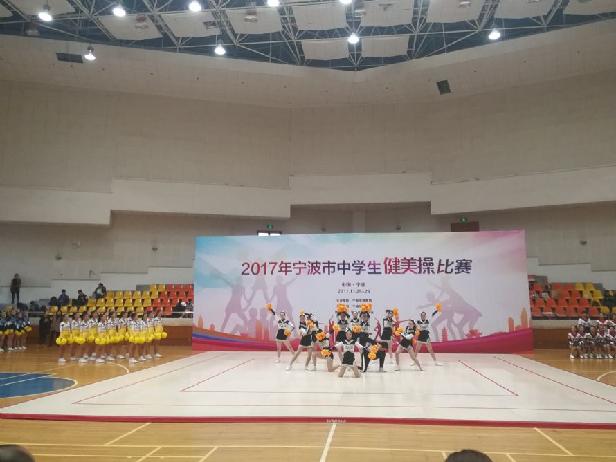 2017年宁波市中学生健美操比赛于1125-26日在我校举行,本次比赛由宁波市教育局主办我校承办市体操协会协办,共有效实中学、镇海中学、宁波外国语学校、宁波市鄞州区区五乡中学、宁波科学中学、宁波职教中心、宁波甬江职高等32支代表队共560人参赛,我校健美操队经过顽强拼搏获高中组规定花球啦啦操第一名,竞技女子单人操第一名,有氧舞蹈第二名,团体第二名,并获得代表宁波市参加2017-2018年度浙江省中学生啦啦操比赛的资格。我校参赛队员来自以下班级,高一(1)许原野,高一(5)陈丹莹、郑羽萤,高一(8)胡晓璐、李轶凡,高一(9)陈格格,高一(10)应荭秋妤,高二(1)吴经辞,高二(5)程紫璘,高二(7)董江南、周依婷,高二(9)钱雨奇。