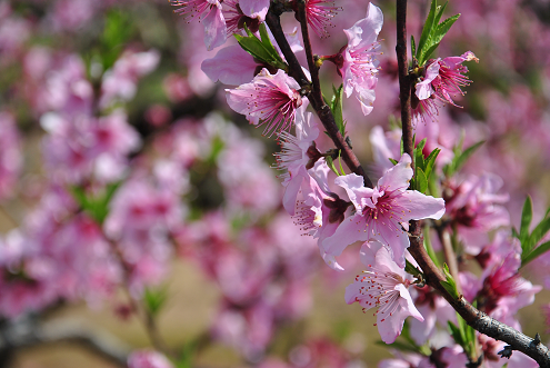 坐车N小时,进入天台县后岸村的桃花坞,近500多亩背靠铁甲山的桃花映入眼帘,遍地竞相开放的桃花,蔓延至视线尽头,一眼望去,如屏如画,走近桃花林,灿烂的桃花让人目不暇接,美不胜收。