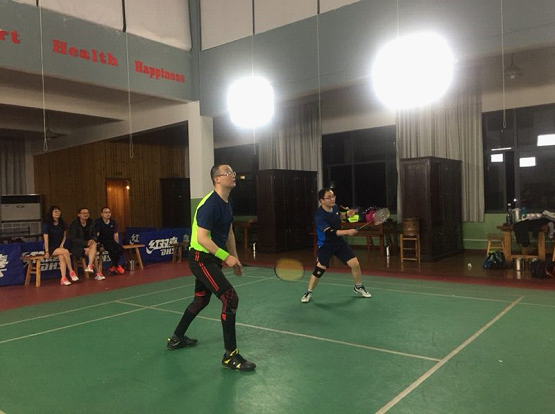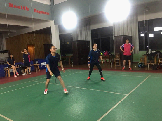 4月9日阳光明媚,我校羽毛球俱乐部一行12人,在校工会的支持下,受奉化职教中心的盛情邀请,来到奉化圣菲羽毛球馆,与奉化教育系统羽毛球联队进行了一场别开生面的羽毛球友谊赛。比赛分为男单、女双、混双、男双,双方队员兴致盎然、挥汗如雨,虽互有胜负,但气氛融洽,大家都十分开心,这其实是我们双方队员共同追求的目标—我运动、我快乐!