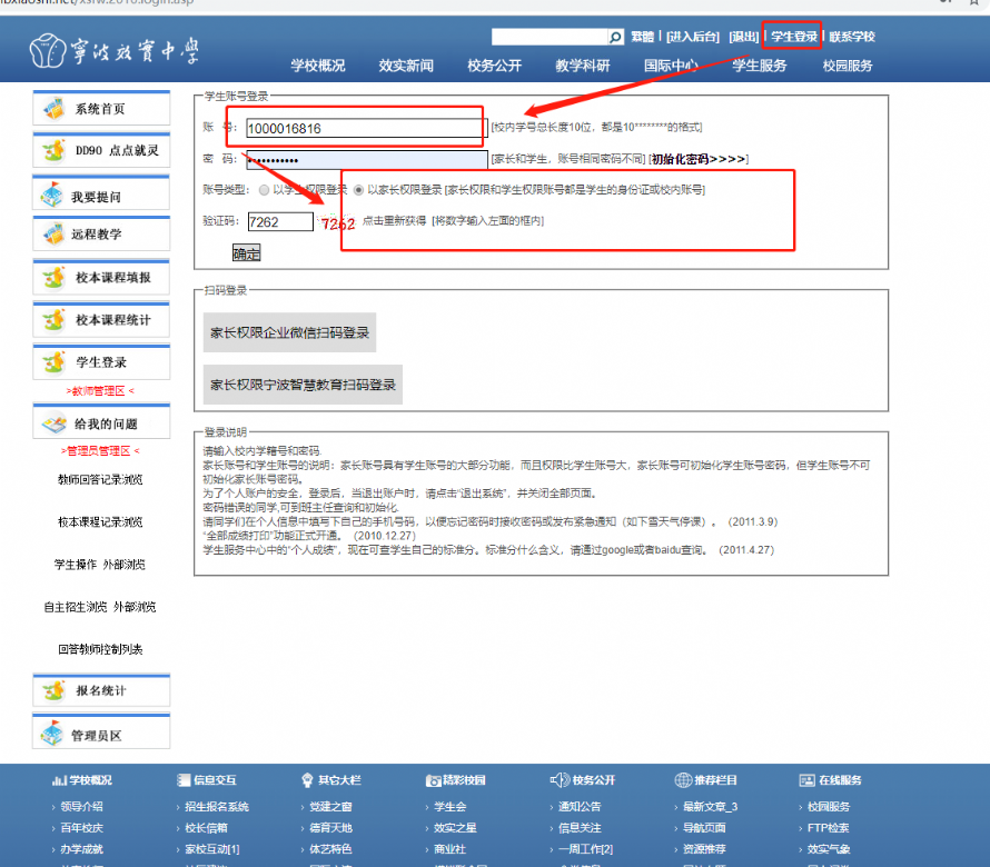 一、以家长身份登录,操作如下图