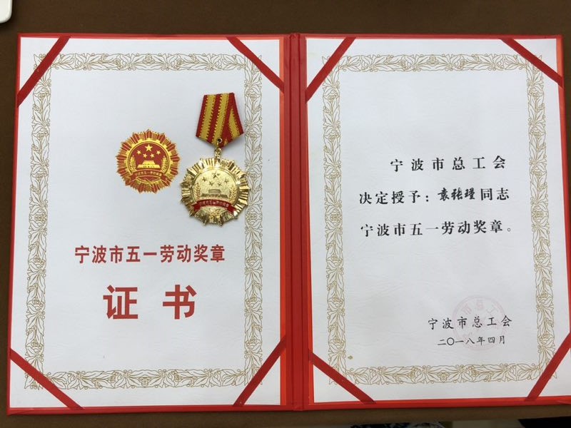 袁张瑾老师荣获2018年宁波市五一劳动奖章