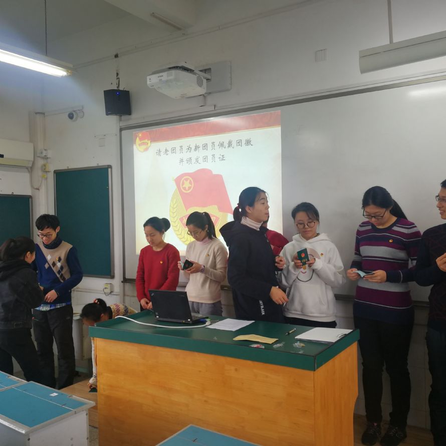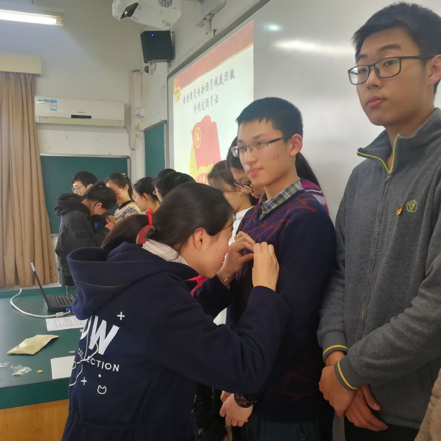 2018年12月26日中午,校团委在教学楼507教室组织2018下半年度入团仪式。入团仪式由校团委组织部具体负责组织。2001吴双、2002金永卿扬等12位同学经业余团校学习,考核合格,光荣地加入了中国共产主义青年团,正式成为一名共青团员。