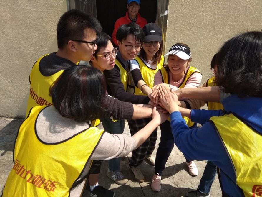 素质拓展活动以“兔子舞”热身拉开序幕,参训的老师们热血沸腾,以饱满的姿态迎接今天的挑战。“团队创建”准备环节,老师们分成两组,选队长、定组名、画队徽,老师们幽默风趣的队名,极具个性的队徽,鼓足士气的口号,已经迫不及待地为接下来的挑战摩拳擦掌了。
