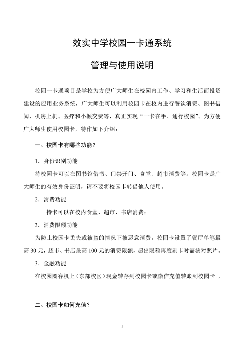 效实中学校园一卡通系统管理与使用说明