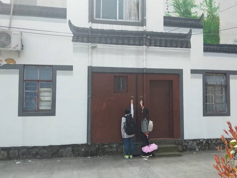 另一部分教职工则在邵江樵老师的组织下跟随着向导去参观大堰的历史文化名村。民宿所在村是明代工部尚书王钫和近代著名文学理论家巴人的故里,向导带领了参观保存尚好的尚书第和巴人故居。