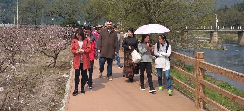 3月24日,周末,天气晴,阳光明媚且气温不高不低,非常舒适,最适合外出踏青啦!由校工会和妇委会自行组织的春游活动在这绝好的时间,吸引了近50名教职工的参与。此次春游的目的地是奉化大堰,大堰古称“连山”,地处奉化市西南端,南为宁海县,西为新昌县,与宁海分界处的第一尖,海拔945米,是奉化第一峰,奉化江就发源于此,因此大堰镇也是甬江源。大堰镇先后荣获全国环境优美乡镇、中国魅力生态镇、中国乡村旅游模范户等荣誉称号。