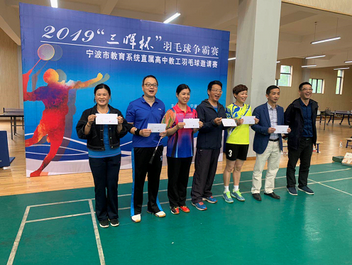 本次比赛我校工会羽毛球俱乐部的参赛队员在连续两天近20场比赛中,表现出的吃苦耐劳精神和集体荣誉感令人敬佩。比赛结束后宁波市教育工会马主席到场亲自为前八名的队伍颁奖,为此次比赛画上了圆满的句号。