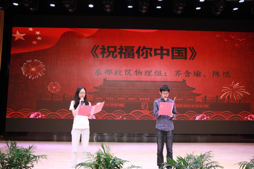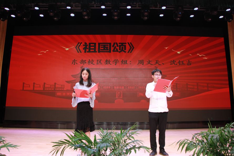 10月11日中午12点,本次活动在效实中学东部校区中山厅隆重举行。来自白杨和东部两个校区共11个团队参与其中,教工们纷纷用不同的方式展示了自己的风采。他们精彩的朗诵,赢得了台下观众的阵阵掌声。