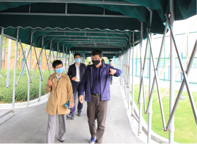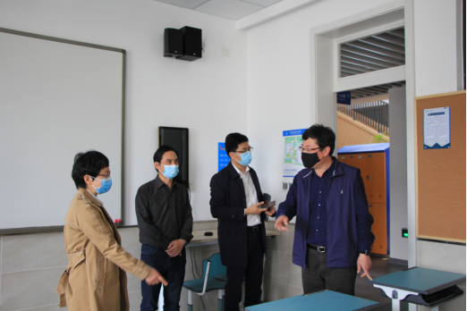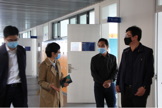 4月17日,市教育局副总督学何倩、团工委书记余辉莅临我校东部校区,检查学校开学复课准备工作落实情况。裘建浩校长、张悦副校长、夏炳副校长及各部门主要负责人全程陪同检查。