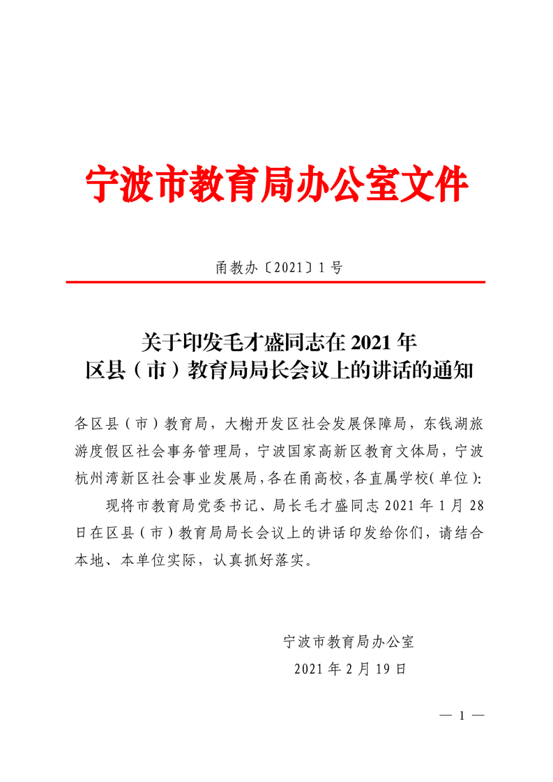 时间:2021.2.26 出处:甬教办〔 2021〕 1 号 编辑: