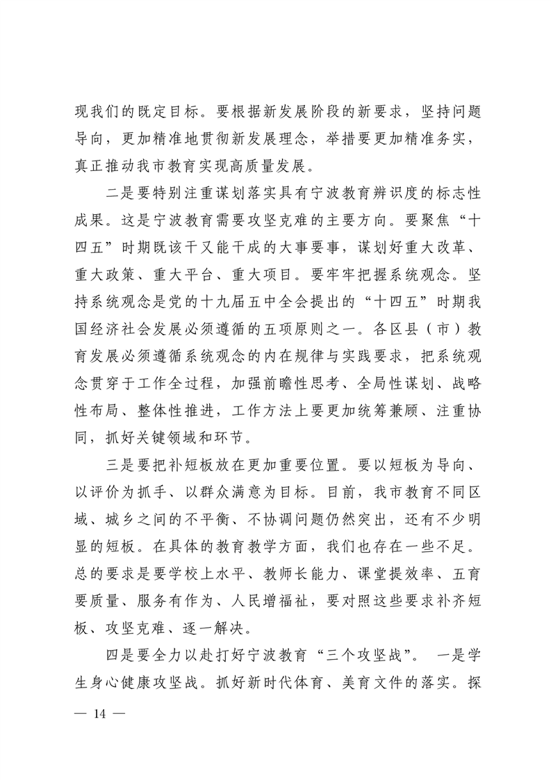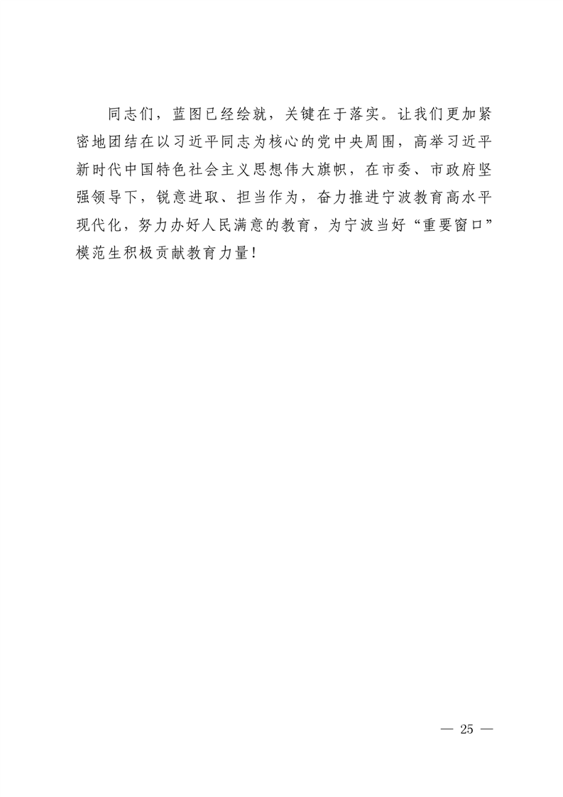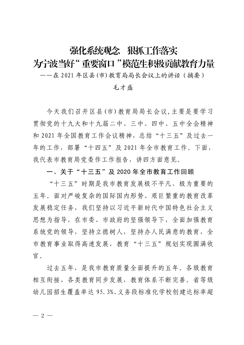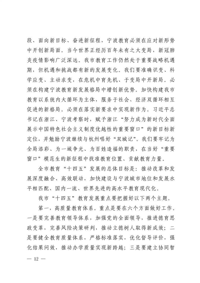 强化系统观念,狠抓工作落实,为宁波当好“ 重要窗口”模范生积极贡献教育力量