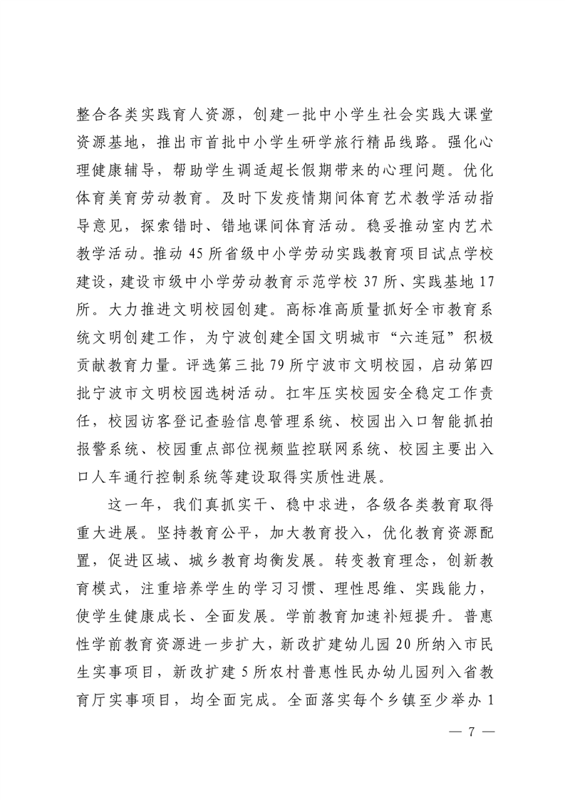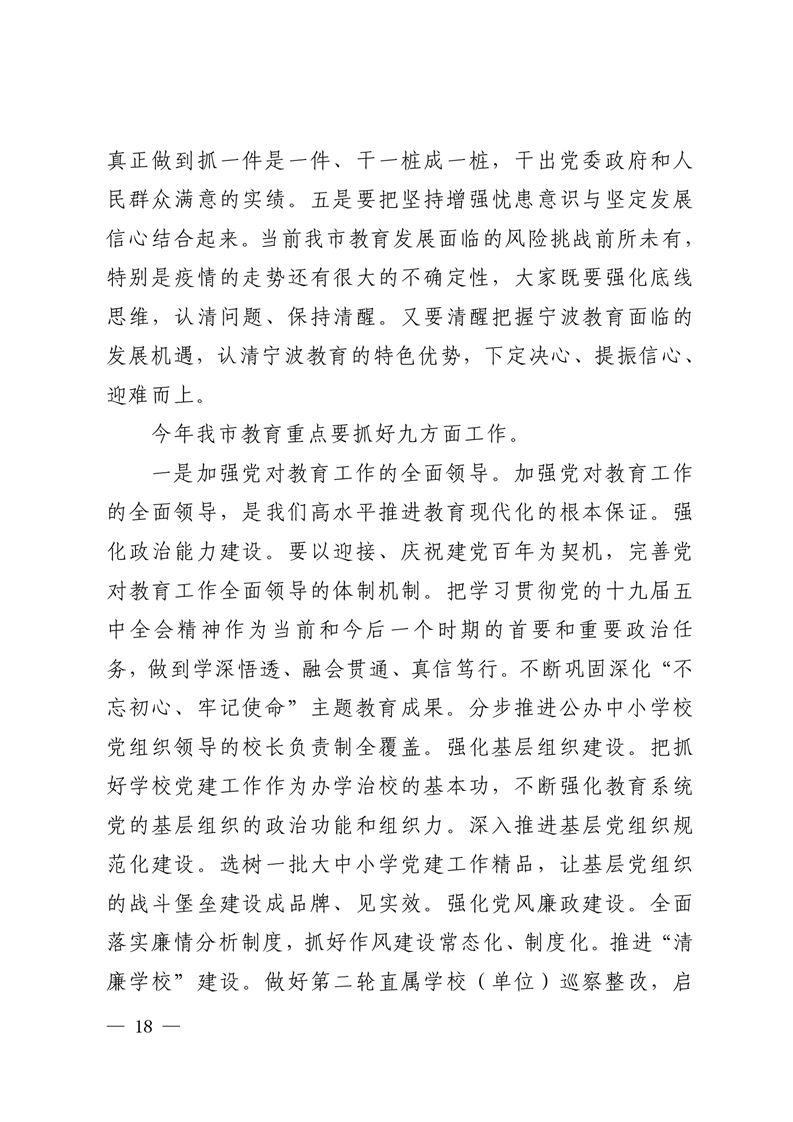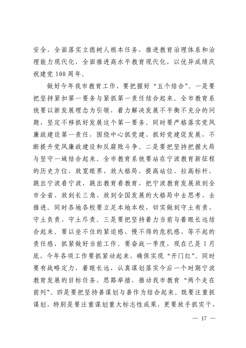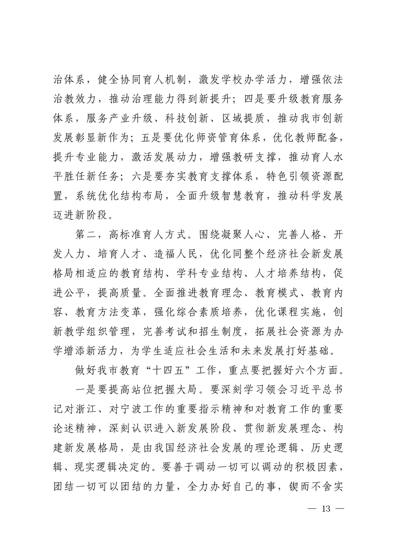 强化系统观念,狠抓工作落实,为宁波当好“ 重要窗口”模范生积极贡献教育力量
