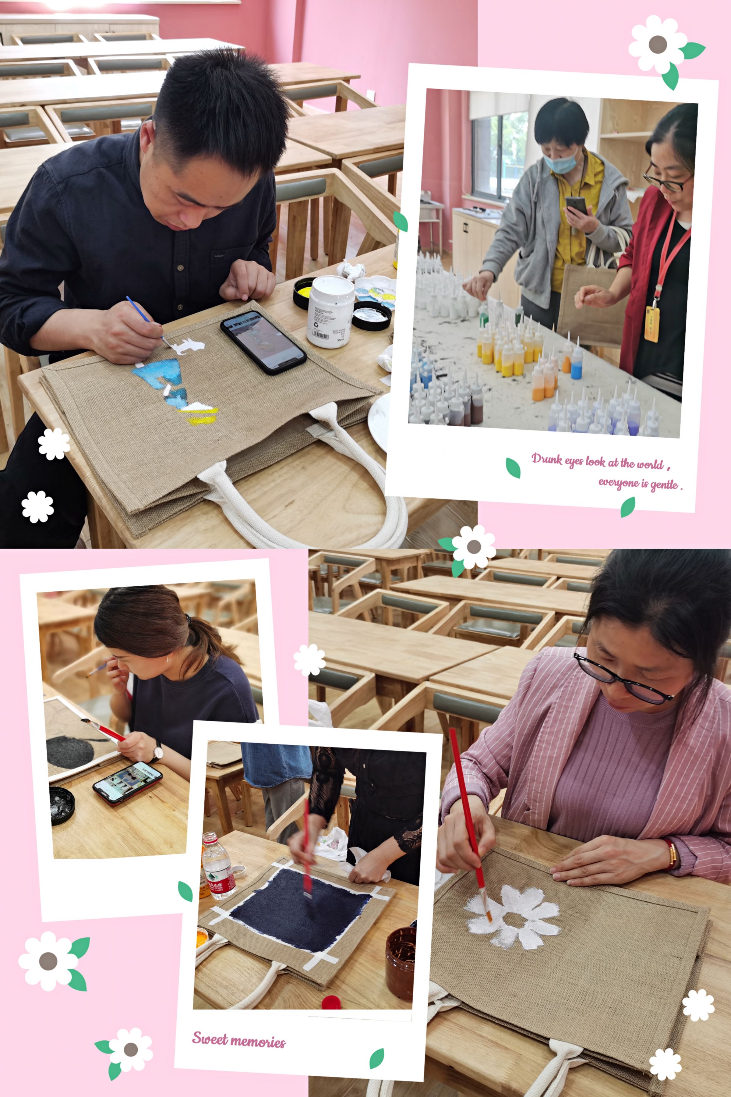 没有一个寒冬不会过去,也没有一个暖春不会到来。尽管目前疫情不止,我们还是在与疫情的抗争中了迎来五月的暖春。暖春五月,校妇委会、工会在老地方举办“绘心一笑,袋上幸福手绘黄麻袋活动,为疫情下的生活增添一份暖色和活络。
