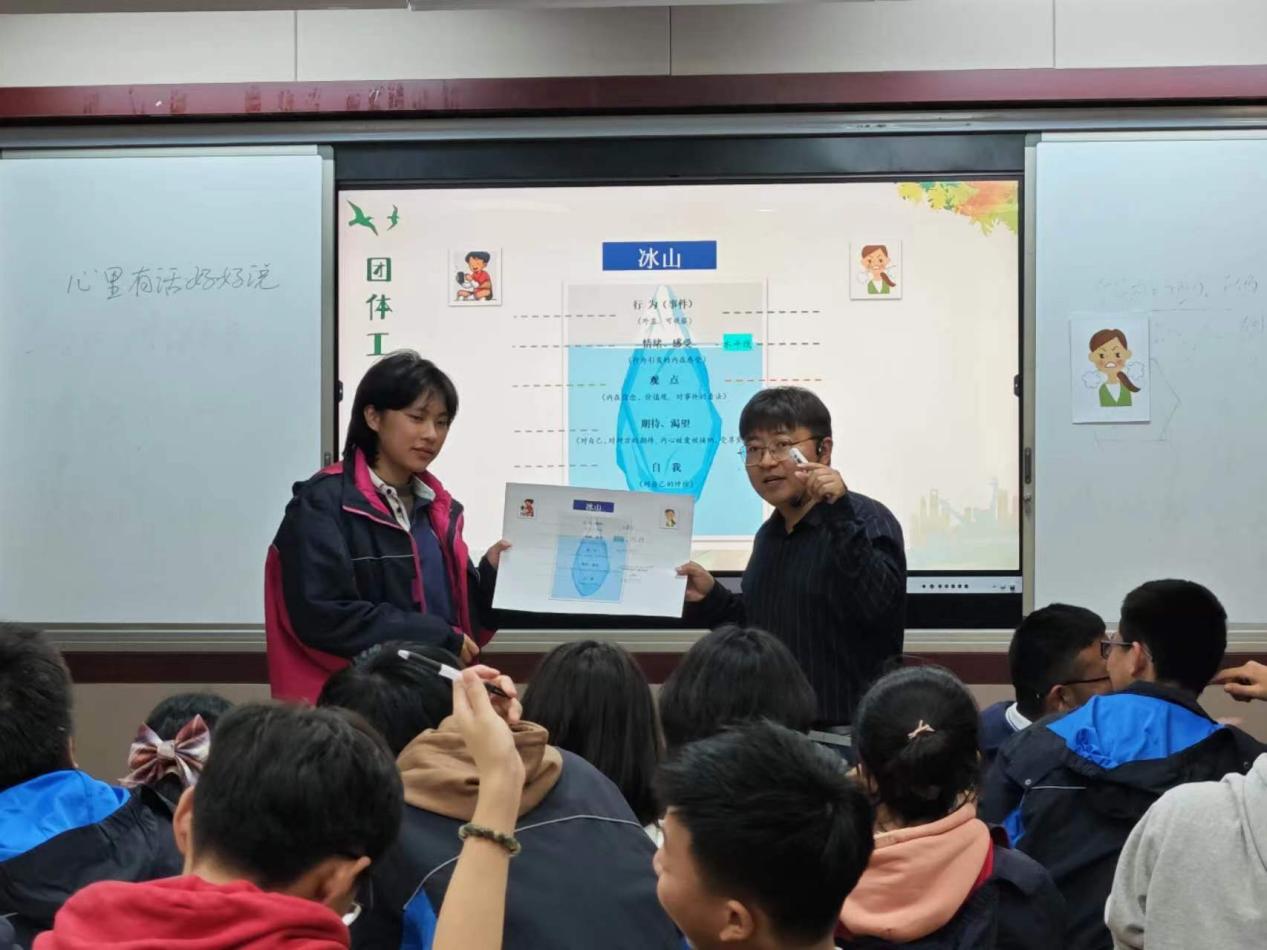 宁波古林职业高级中学虞杰老师执教心理课《心理有话好好说》。课堂通过暖身活动让学生感受到沟通的重要性,用日常亲子对话情境引发学生的共鸣,让学生意识到亲子矛盾往往由不理性、不客观的表达开始。借助萨提亚的冰山理论,引导学生了解行为背后的情绪情感、内在价值、期待等关键内涵。带领学生认识到一致性沟通的重要性,并能在与父母沟通时很好的运用这一理论,从而建立良好的亲子关系。内容由浅入深,师生交流融洽。