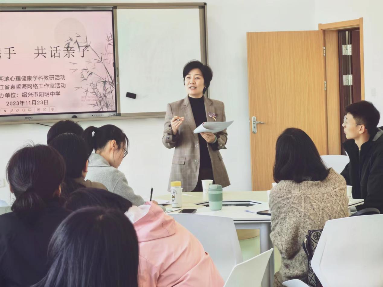 为进一步推动绍甬两地学校的心理健康教研工作,增强区域交流,发挥专家引领作用,促进心理老师共同成长,从而更好地推动两区心理教育的健康发展。2023年11月22日、23日在绍兴市阳明中学开展了绍甬两地心理健康学科教研活动暨浙江省袁哲海网络名师工作室活动,60多位市直属、越城区、柯桥区、宁波市骨干心理教师和浙江省袁哲海网络名师工作室成员参加了此次活动。我校心理教师周佳莹老师在此次活动中执教心理课《我的家庭沟通漂流瓶》。