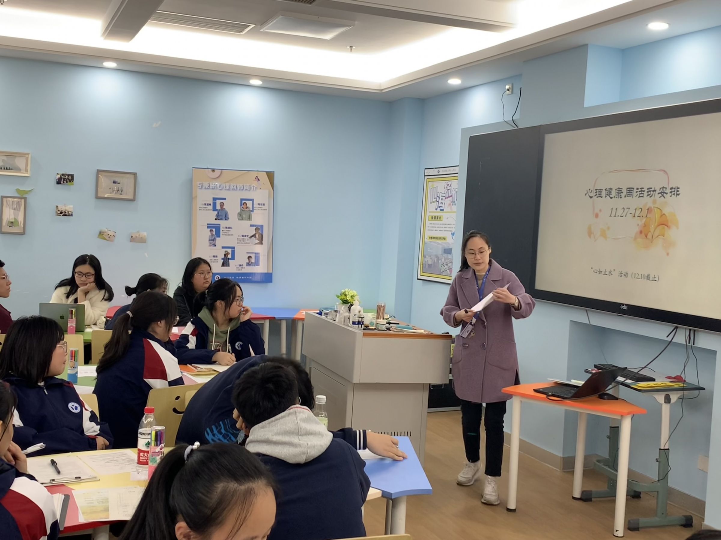 2023年11月21日,本学期第二次心理委员会议在东部校区下沉广场心理教室顺利召开。周老师介绍了会议的主要议程,本次会议主要是为了下周的心理嘉年华活动与月底的真人图书馆活动做好准备与宣传工作。
