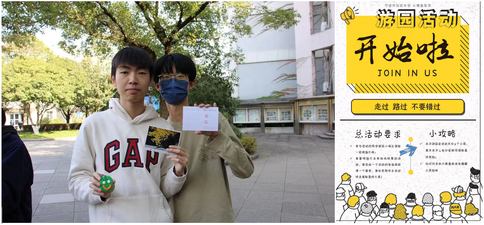 在这寒冷的冬日里,只要你有心留意,也能觅得屡屡生机,拥抱爱与幸福。冬日暖阳中,效实中学两校区迎来了心理嘉年华活动。本届心理周白杨校区以“从心出发,与爱同行”为主题,东部校区以“爱自己,爱他人,爱生活”为主题,分别开展了多姿多彩的校园心理健康活动。
