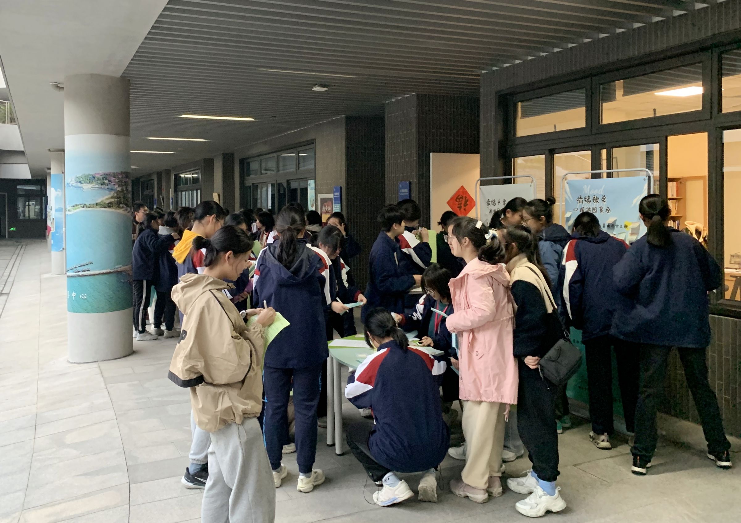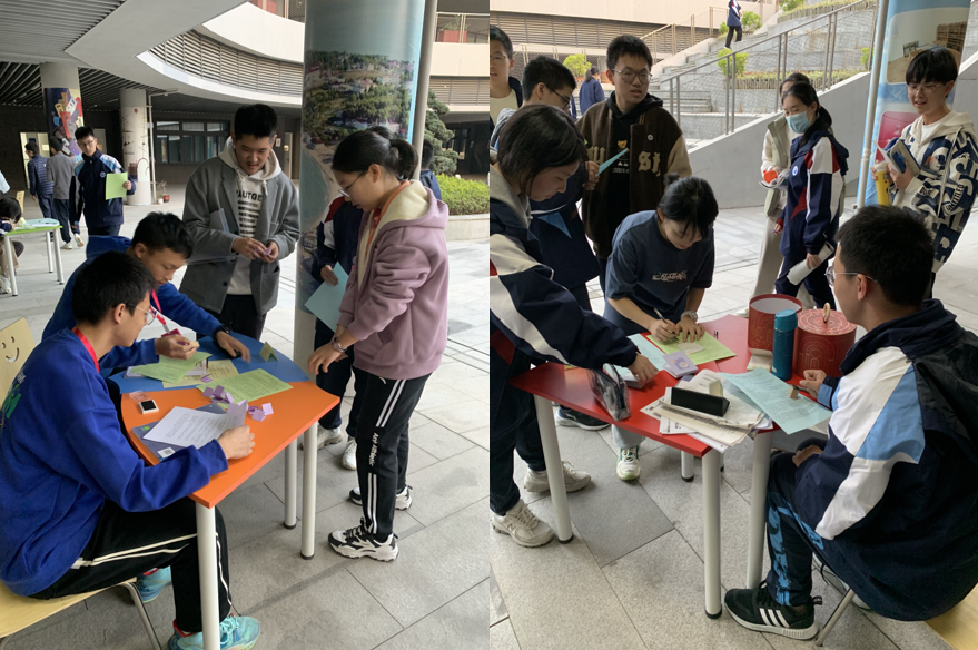 情商是什么?一个高情商的人是什么样的?如何成为一个高情商的人?在“情商探秘”心理游园集会中,同学们分别体验了情绪歌单&情绪书单、情商测验、曲水流觞人际盲盒、海龟汤、挑战趾压板5个小活动,在活动中收集印章并兑换小奖品。