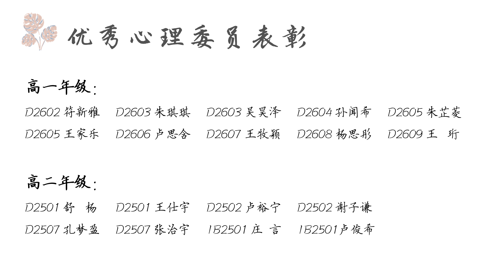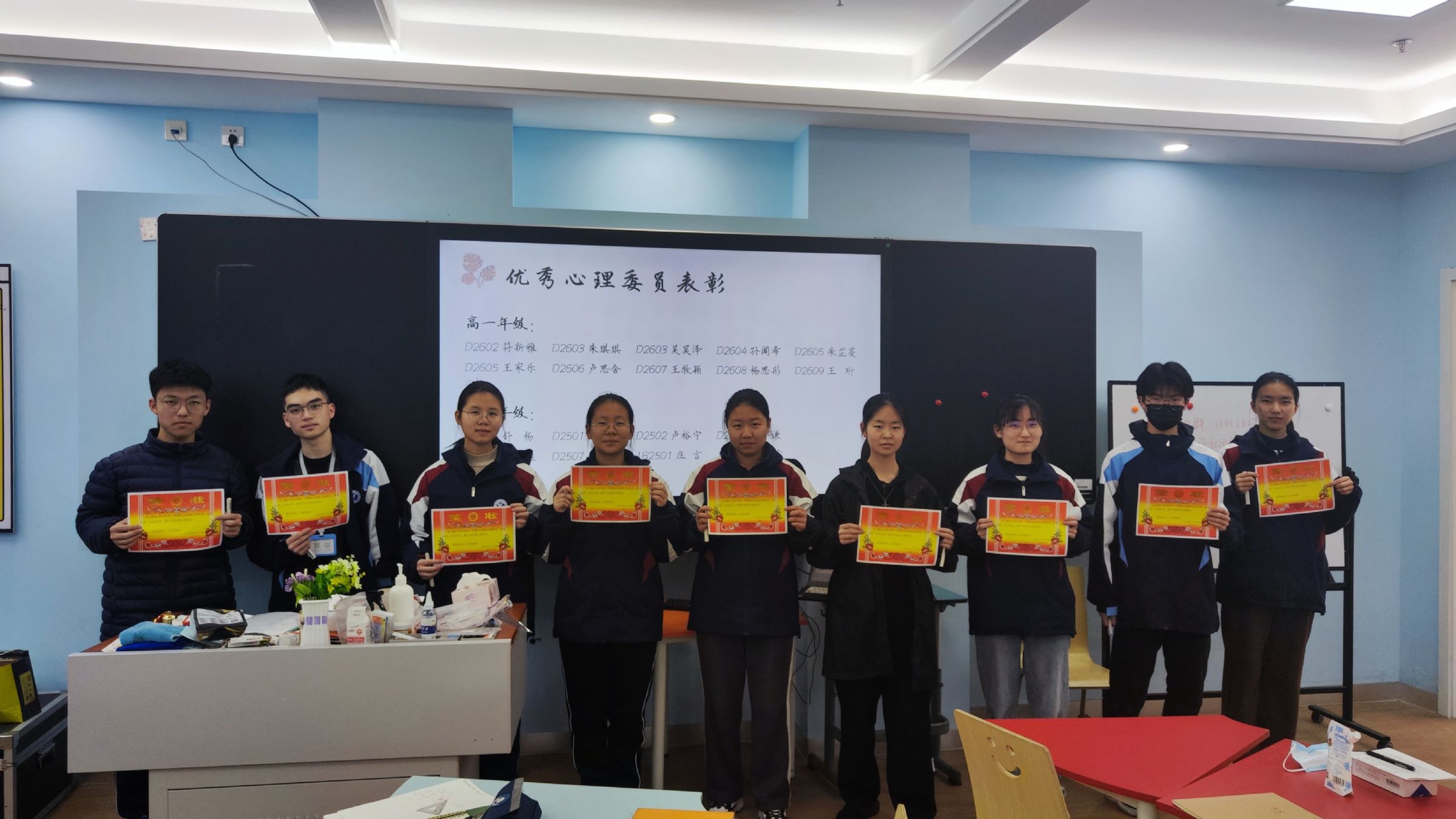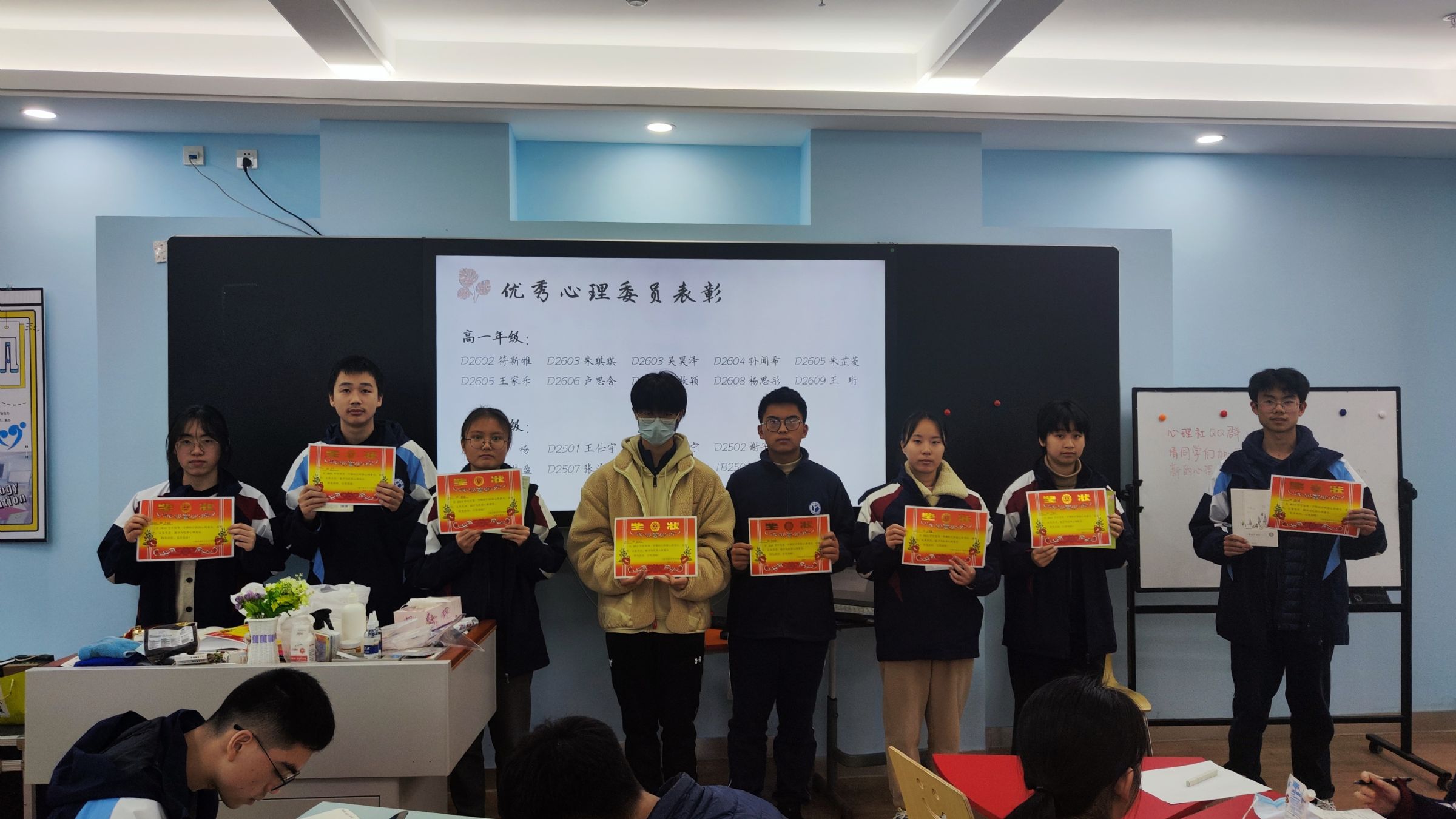 在优秀心理委员表彰环节,周老师为高一、高二的优秀心理委员颁发了奖状和小奖品。