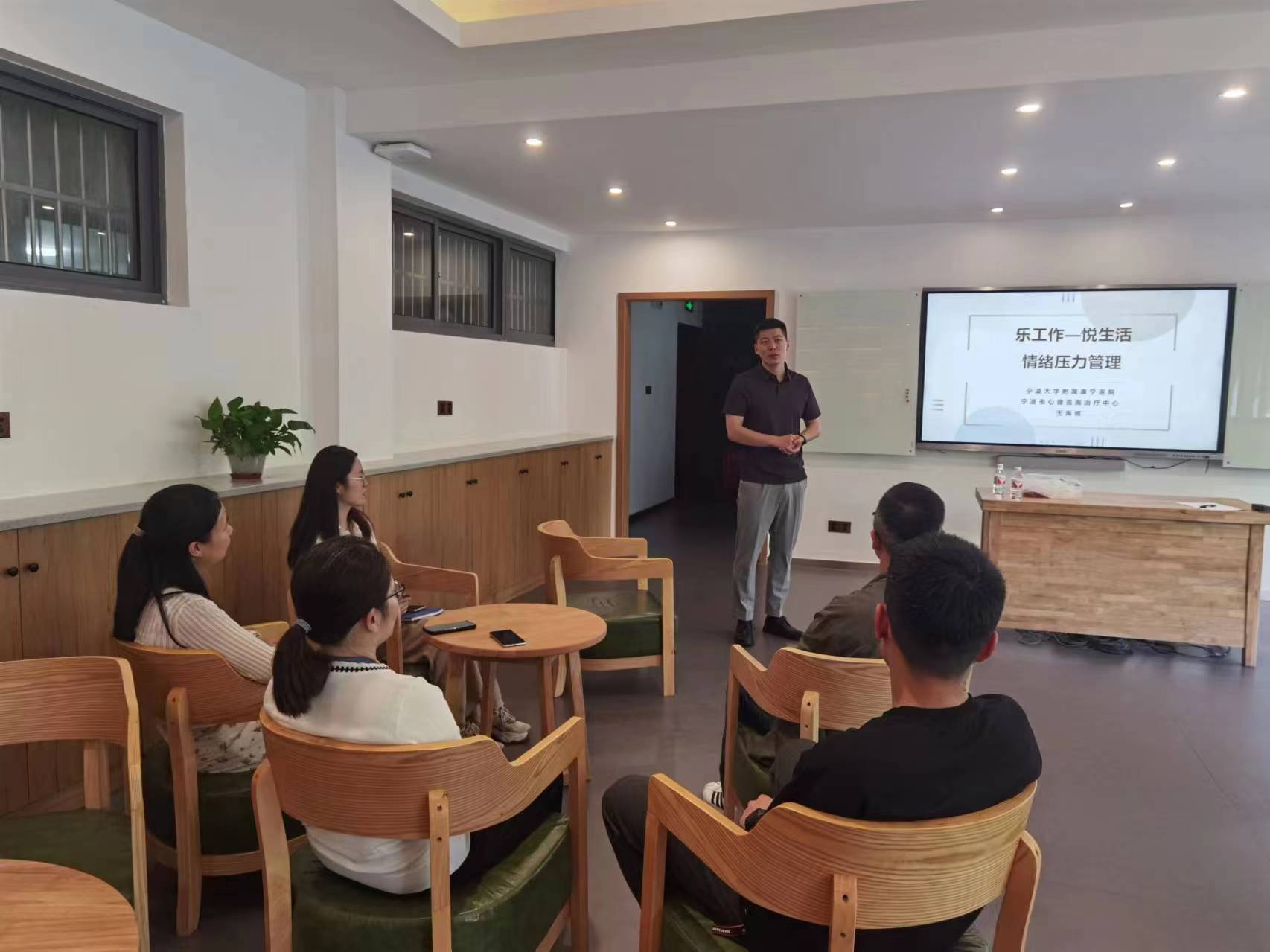 为切实维护我校教职工心理健康,营造快乐工作、健康生活的良好氛围,6月12日,我校白杨校区邀请了宁波市康宁医院的王禹博医生,为教师们开展了心理减压沙龙活动。