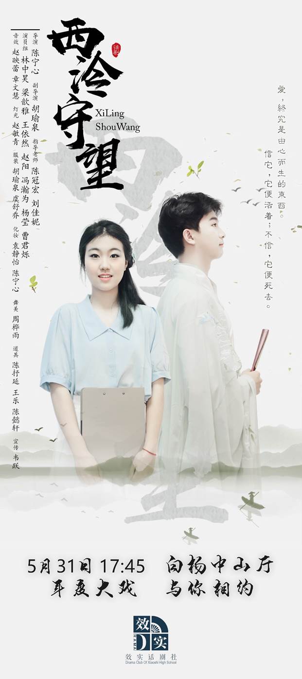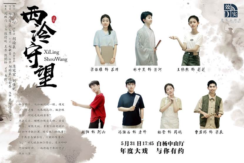 2024531日傍晚,效实话剧社2024学年年度大戏《西泠守望》于白杨校区中山厅上演。经过近半年的悉心准备,话剧社为所有前来观演的师生献上了一场视听盛宴。演员全情投入的演绎和直击人心的剧情,赢得了观众的认可。