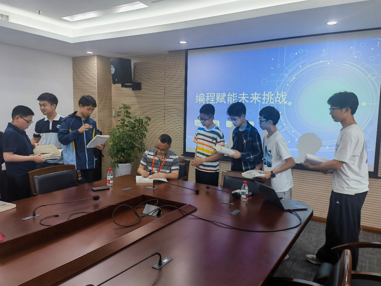 董永建老师著有《信息学奥赛一本通》系列,在活动开始前,董永建老师为热情的同学们进行签书。